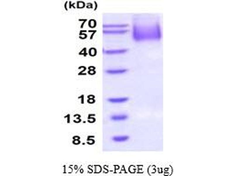 The purity of the protein is greater than 95 % as determined by SDS-PAGE and Coomassie blue staining.