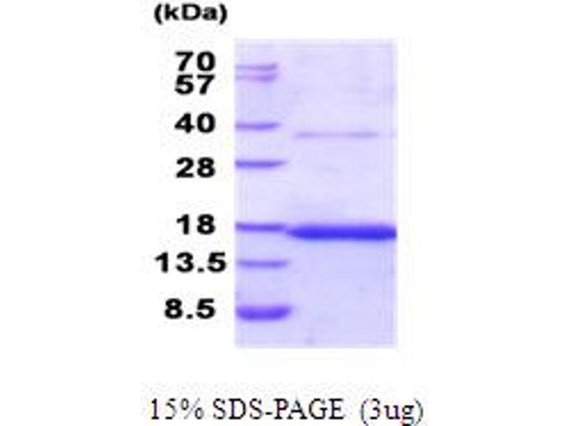 The purity of the protein is greater than 95 % as determined by SDS-PAGE and Coomassie blue staining.
