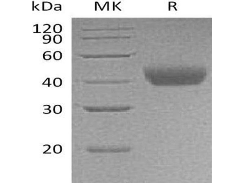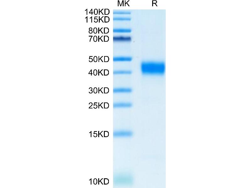 The purity of the protein is greater than 95 % as determined by SDS-PAGE and Coomassie blue staining.