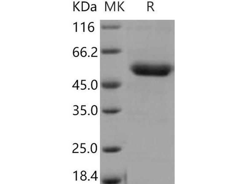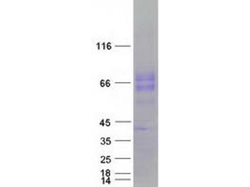 The purity of the protein is greater than 95 % as determined by SDS-PAGE and Coomassie blue staining.