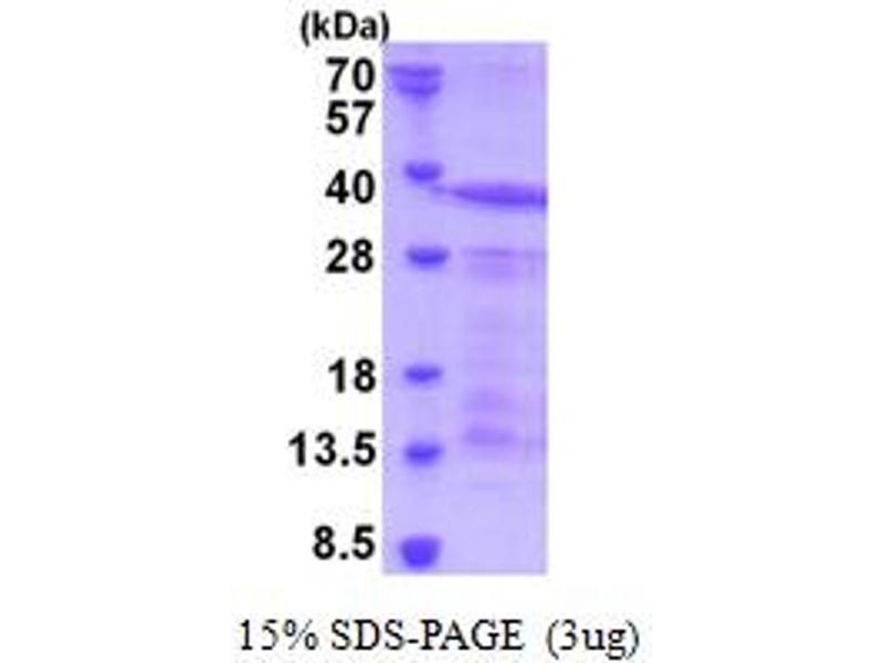 The purity of the protein is greater than 85 % as determined by SDS-PAGE and Coomassie blue staining.
