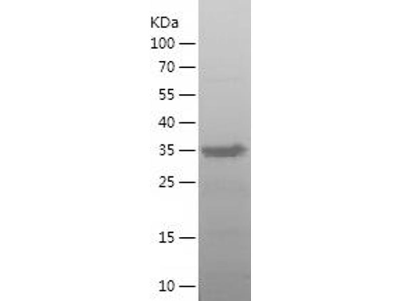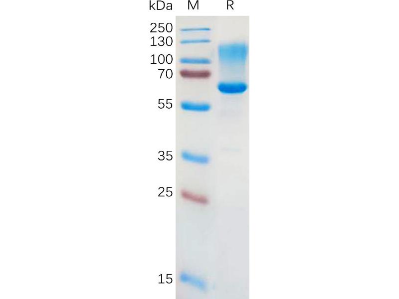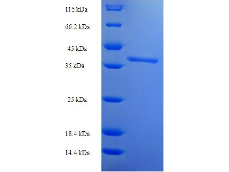 The purity of the protein is greater than 95 % as determined by SDS-PAGE and Coomassie blue staining.