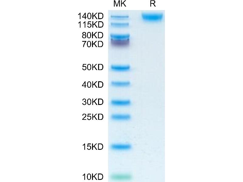 The purity of the protein is greater than 85 % as determined by SDS-PAGE and Coomassie blue staining.