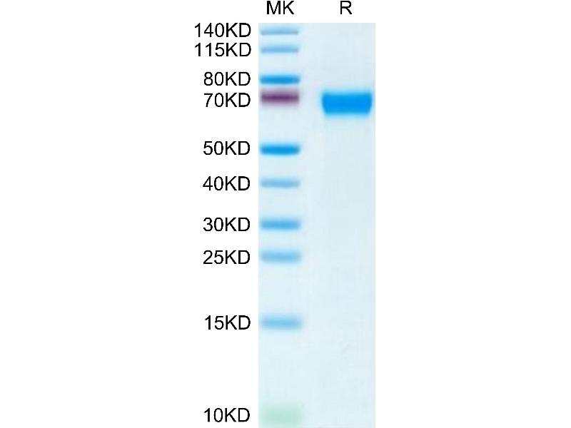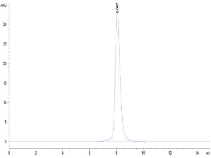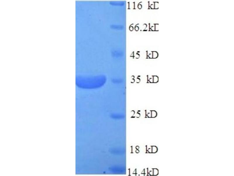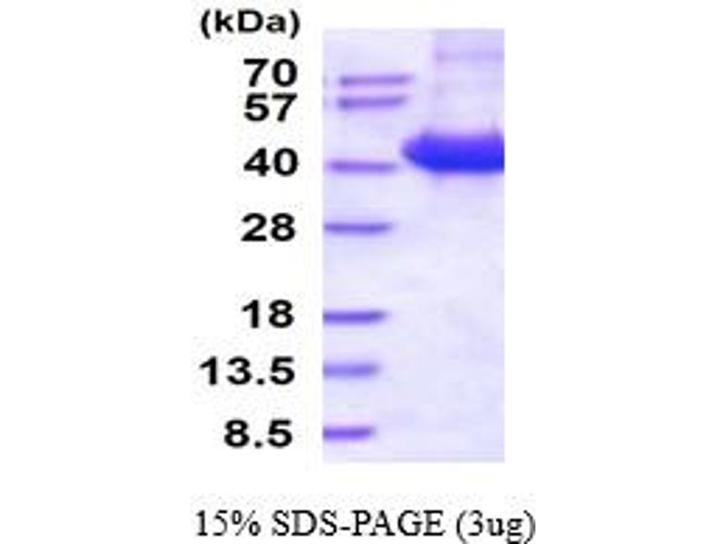 The purity of the protein is greater than 95 % as determined by SDS-PAGE and Coomassie blue staining.