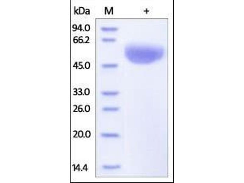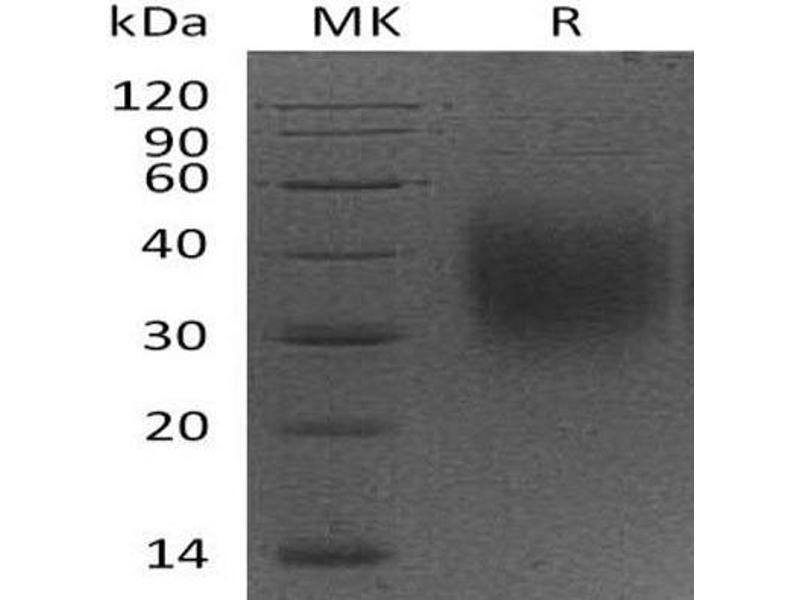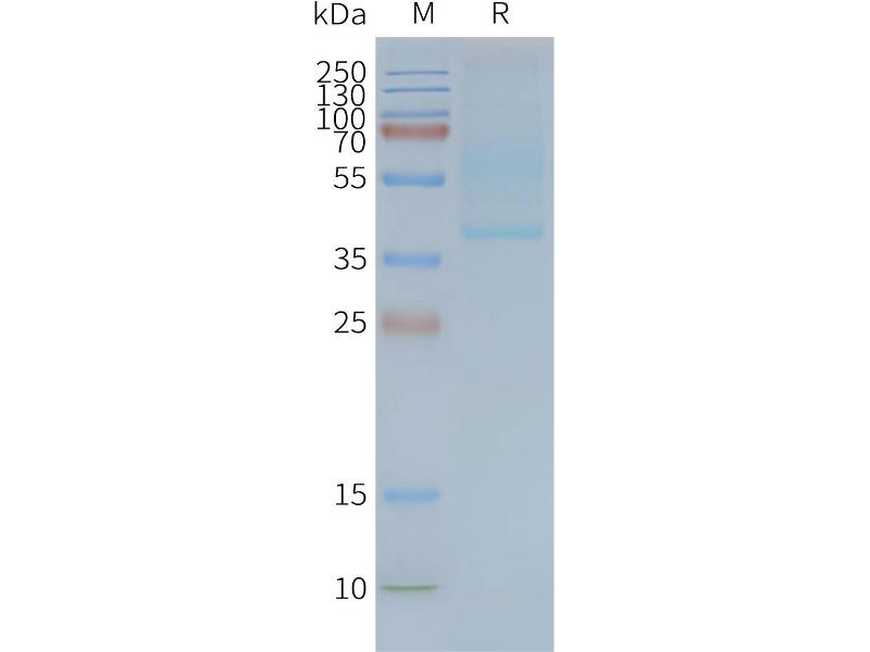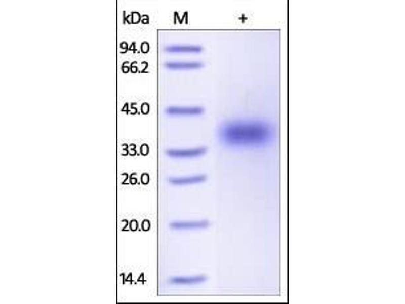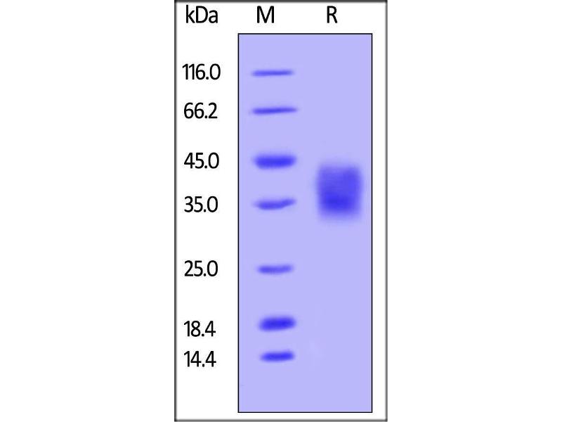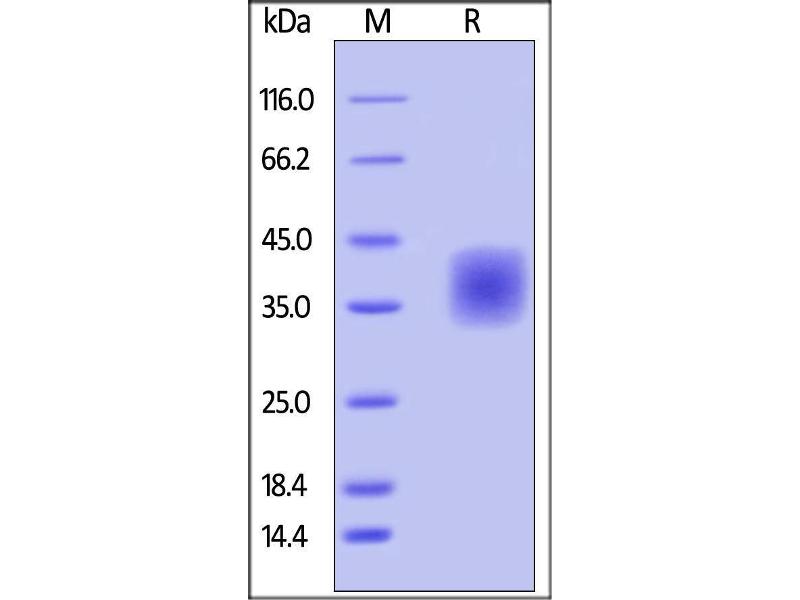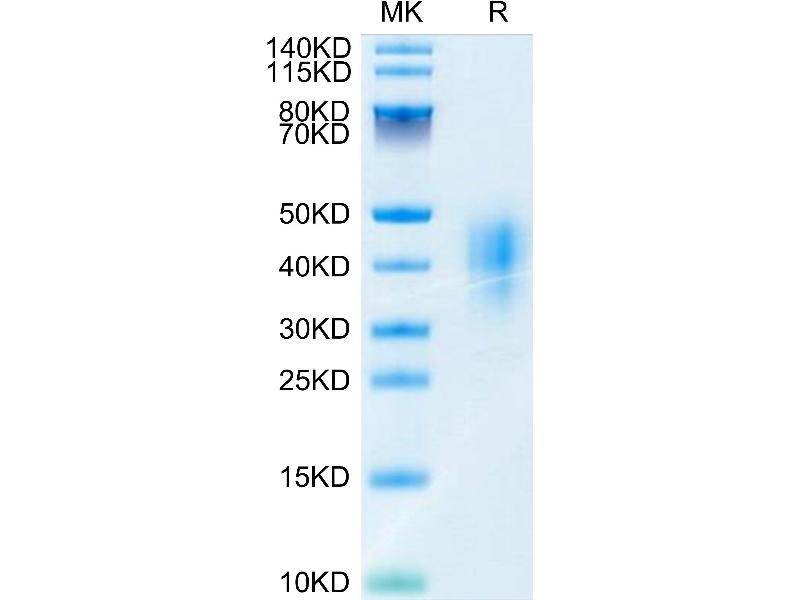 The purity of the protein is greater than 95 % as determined by SDS-PAGE and Coomassie blue staining.