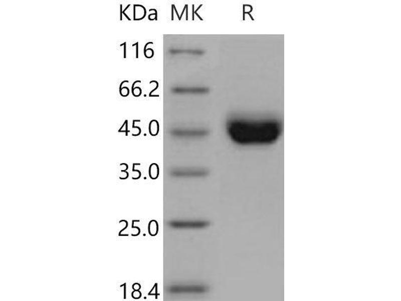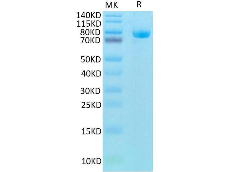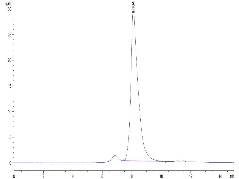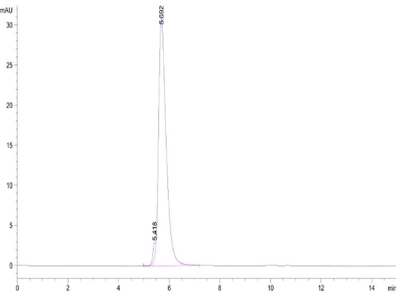 The purity of the protein is greater than 95 % as determined by SDS-PAGE and Coomassie blue staining.