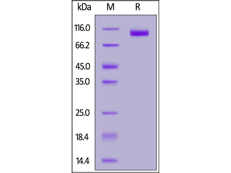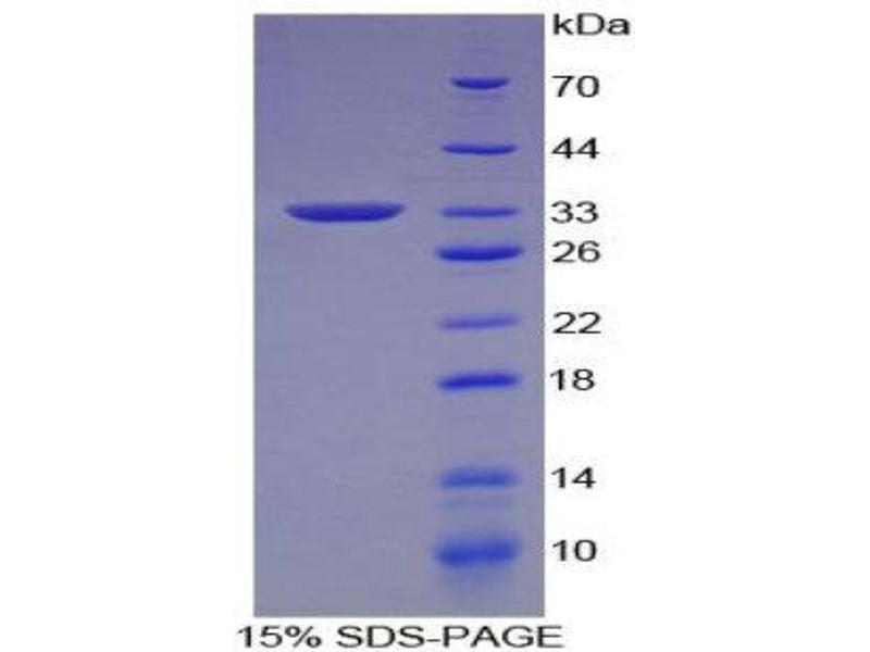 The purity of the protein is greater than 90 % as determined by SDS-PAGE and Coomassie blue staining.