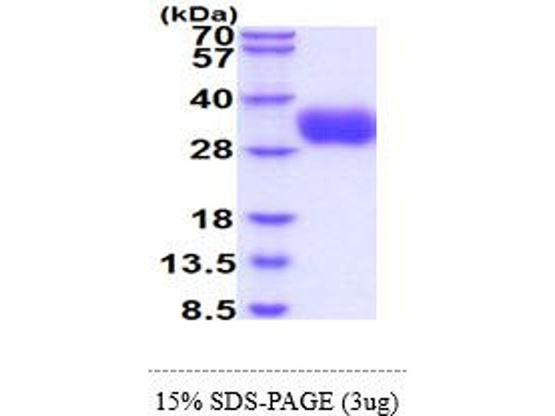 The purity of the protein is greater than 85 % as determined by SDS-PAGE and Coomassie blue staining.