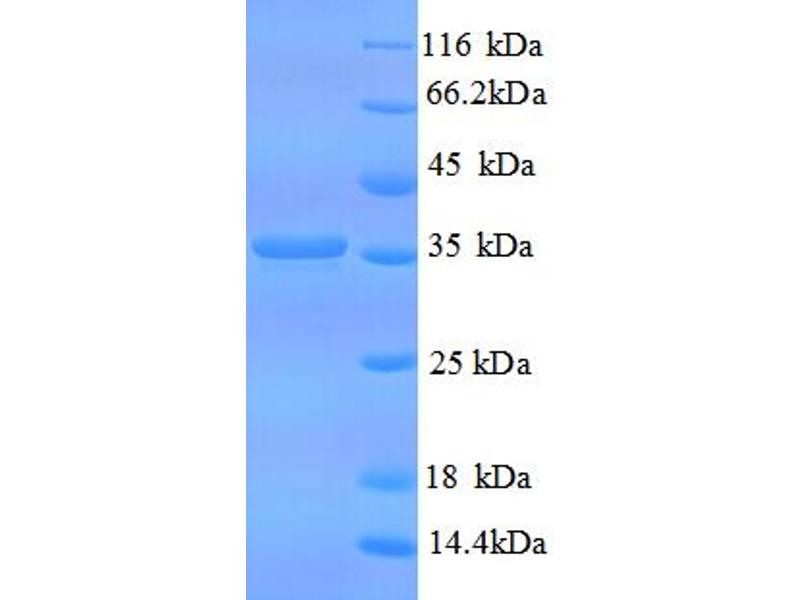 The purity of the protein is greater than 95 % as determined by SDS-PAGE and Coomassie blue staining.
