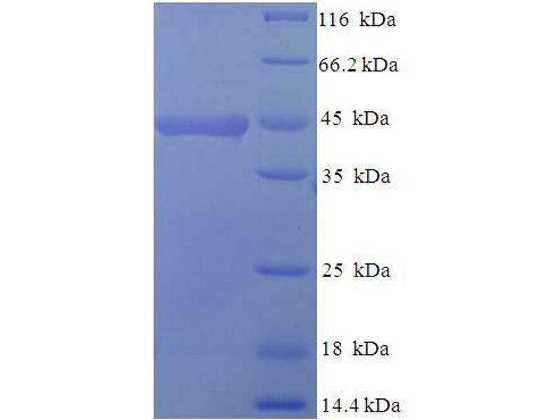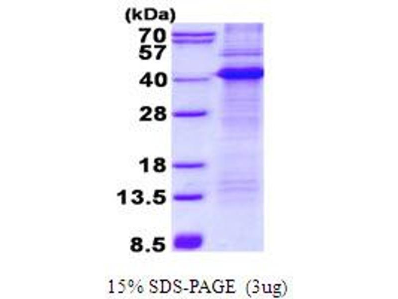 The purity of the protein is greater than 95 % as determined by SDS-PAGE and Coomassie blue staining.