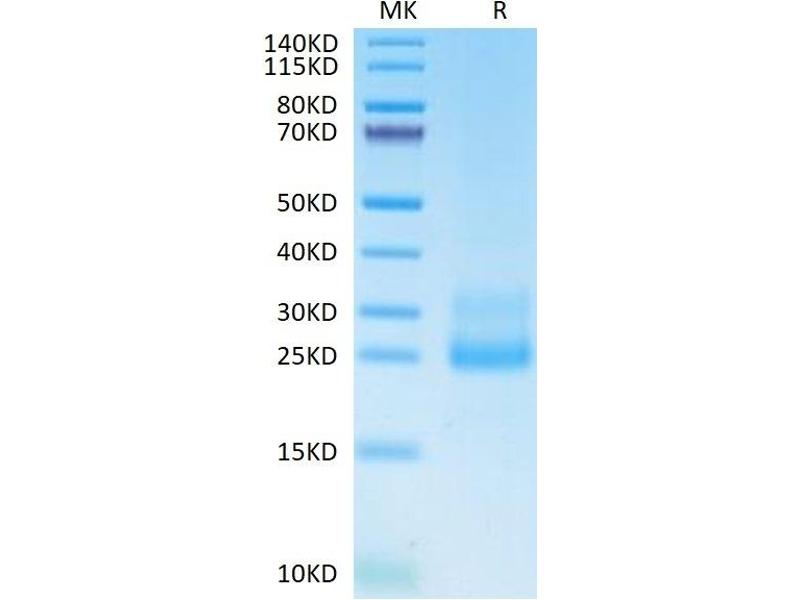 The purity of the protein is greater than 95 % as determined by SDS-PAGE and Coomassie blue staining.