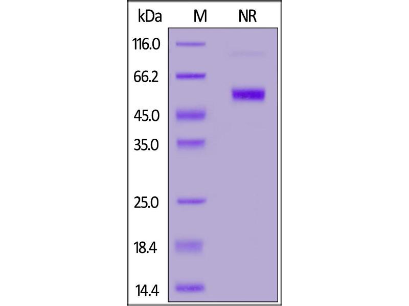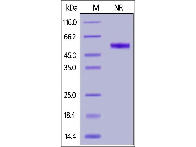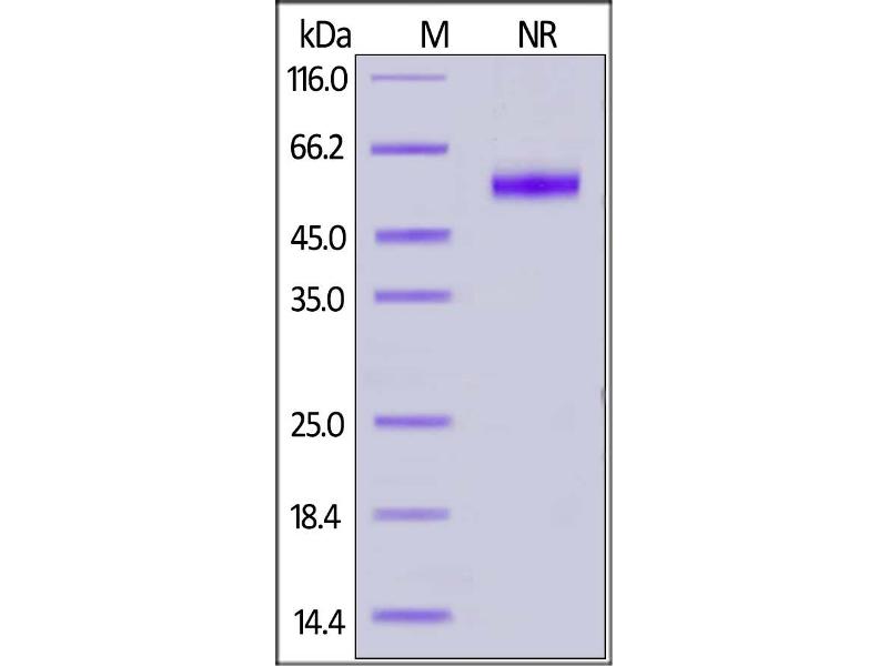 The purity of the protein is greater than 95 % as determined by SDS-PAGE and Coomassie blue staining.