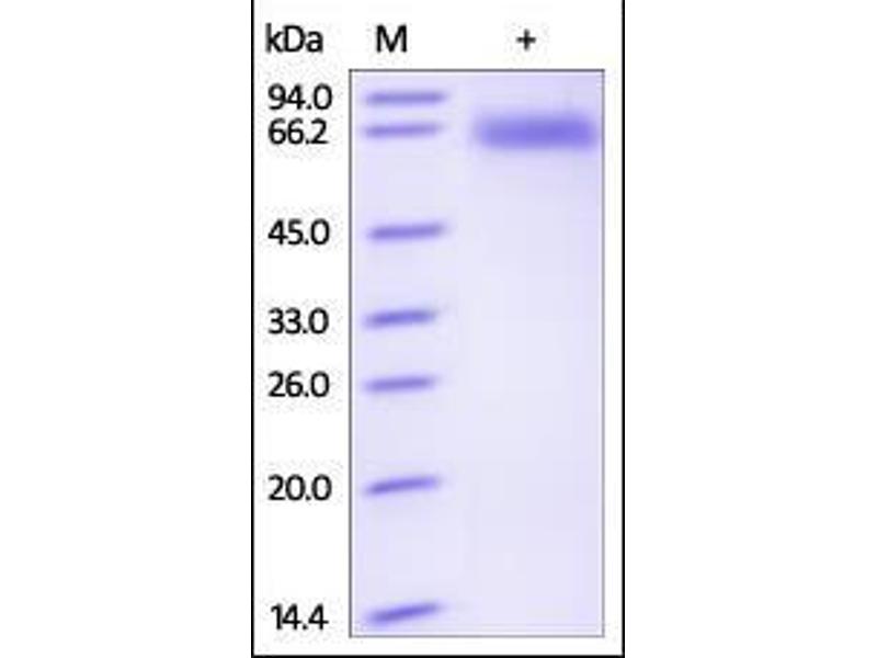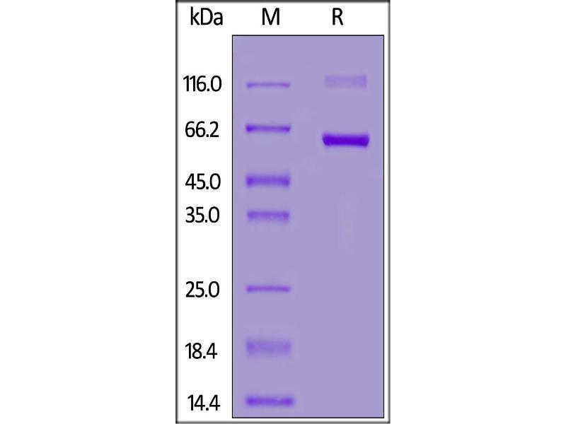 The purity of the protein is greater than 95 % as determined by SDS-PAGE and Coomassie blue staining.