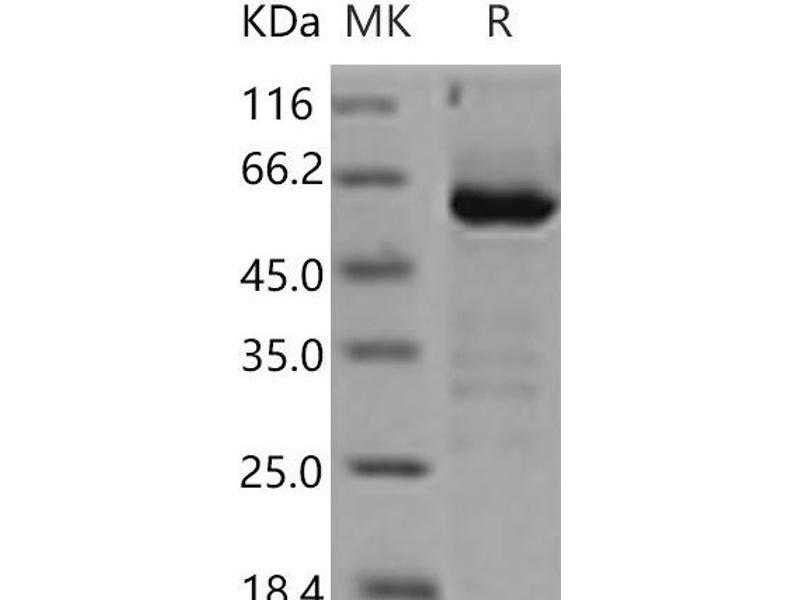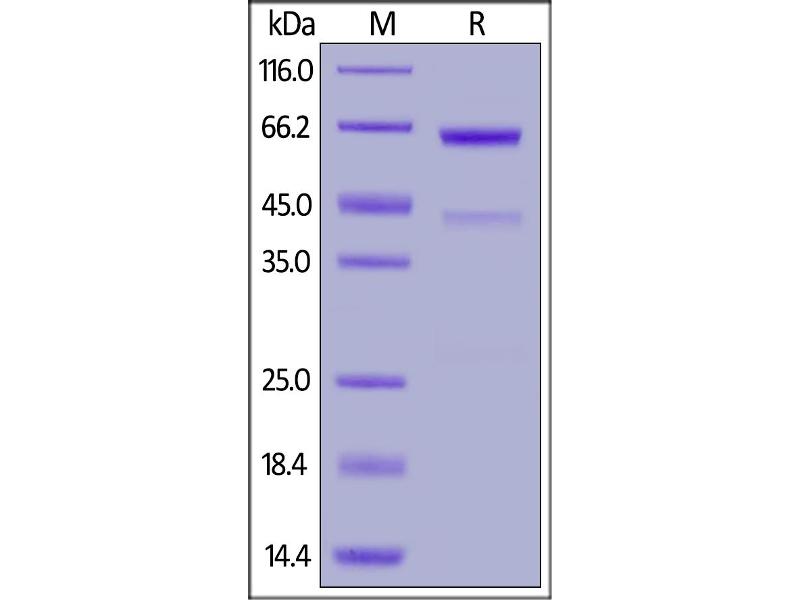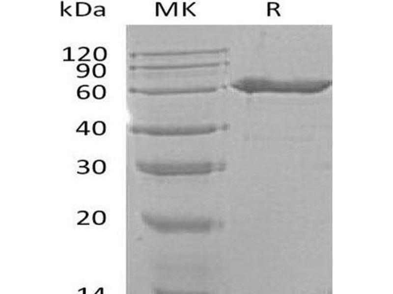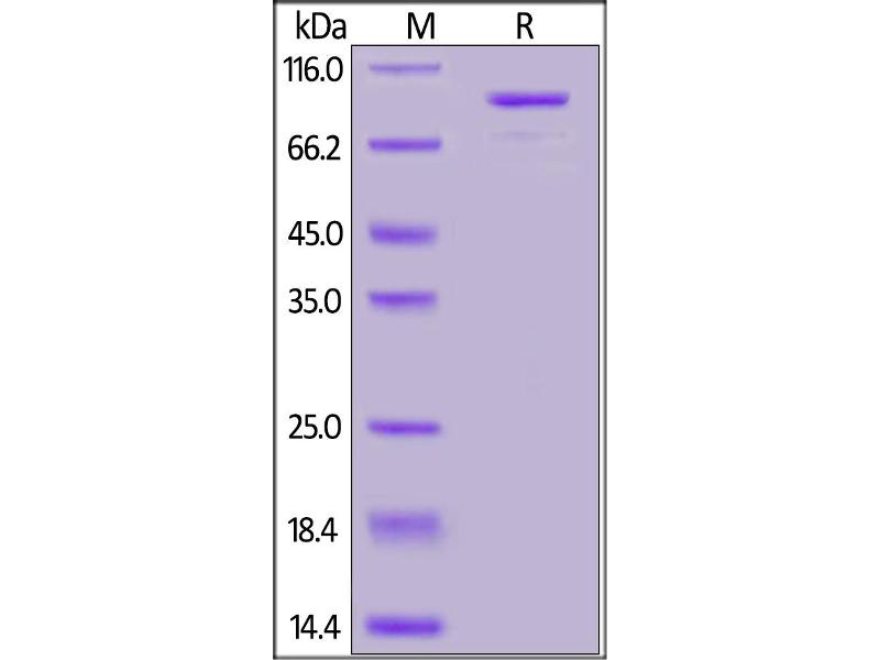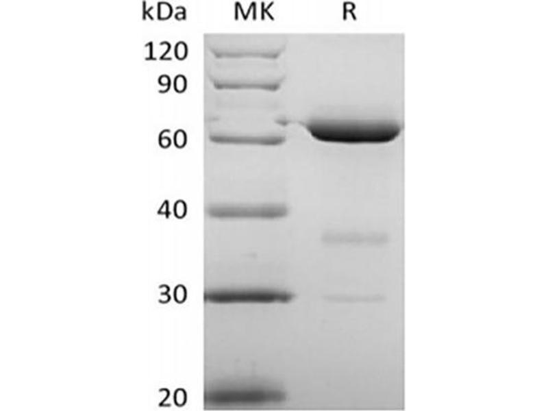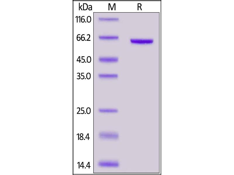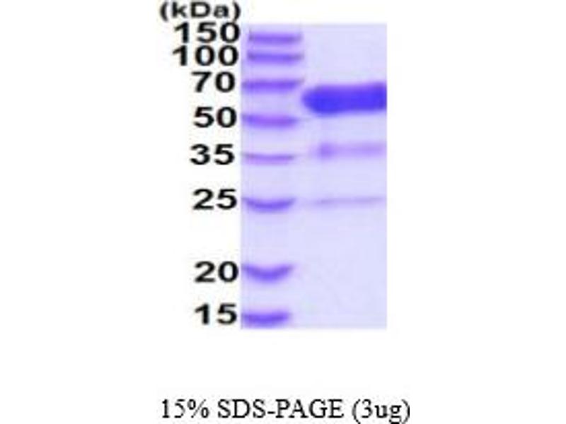 The purity of the protein is greater than 95 % as determined by SDS-PAGE and Coomassie blue staining.