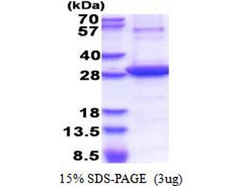 The purity of the protein is greater than 85 % as determined by SDS-PAGE and Coomassie blue staining.