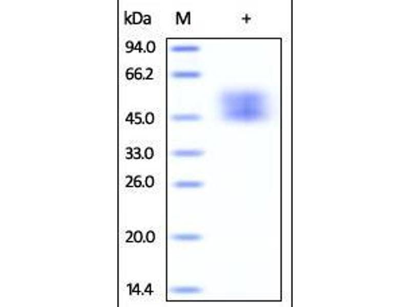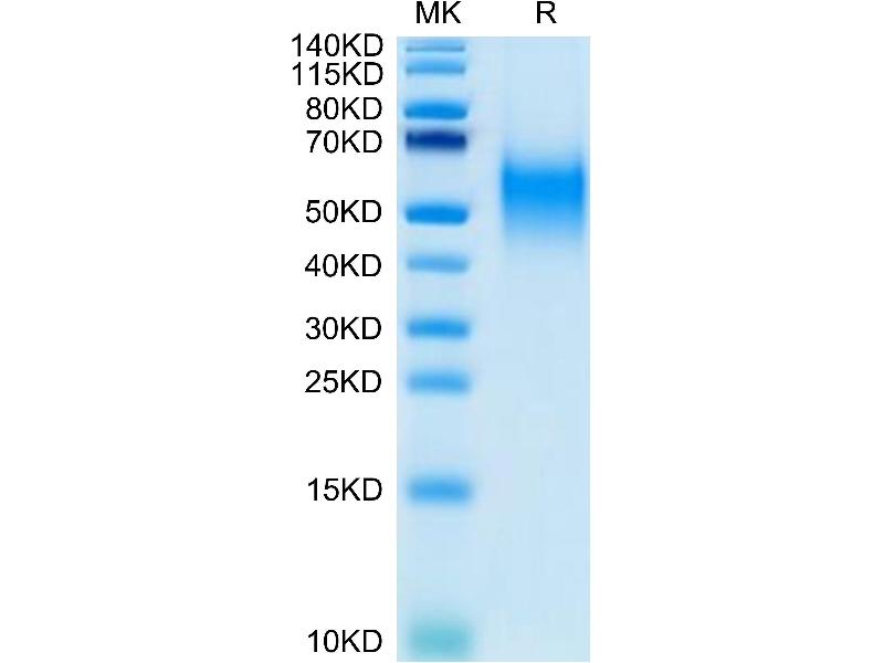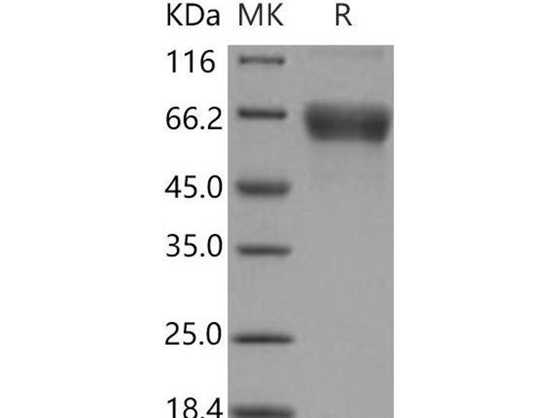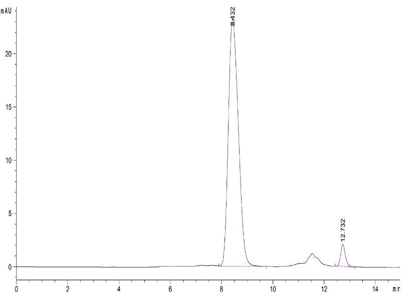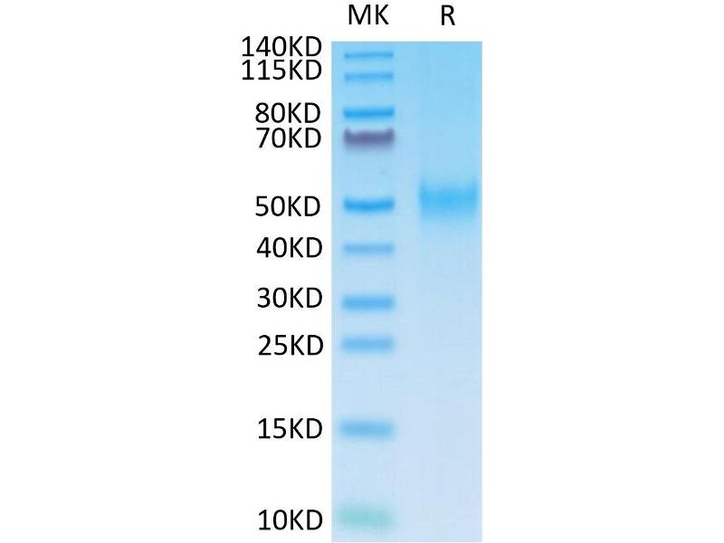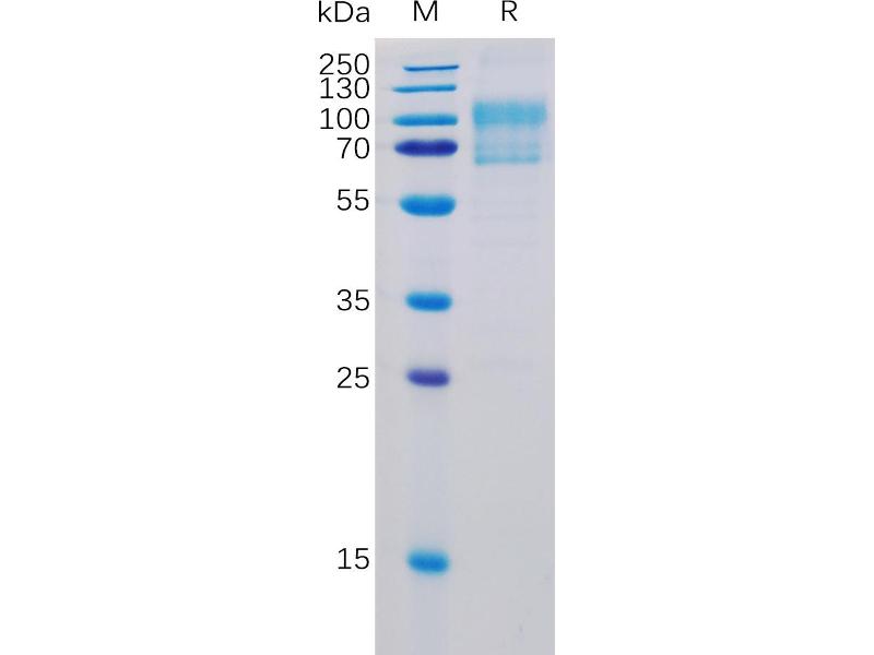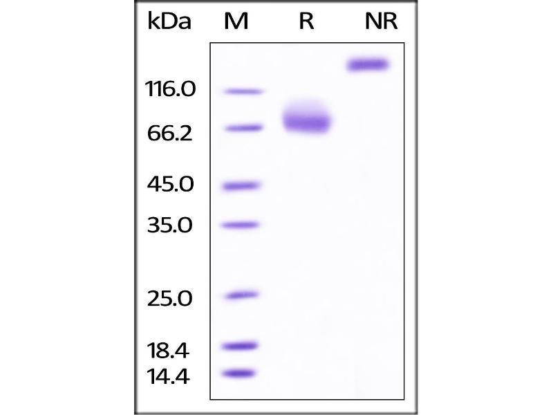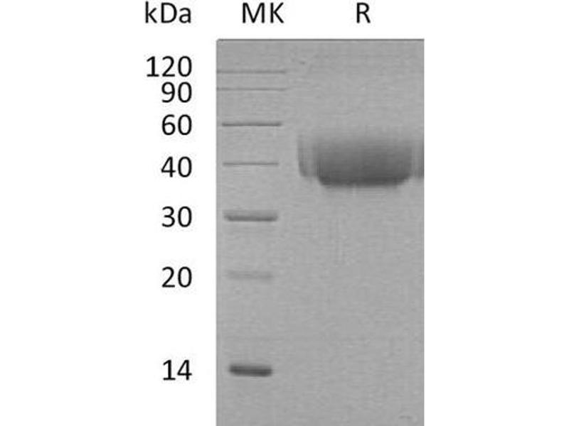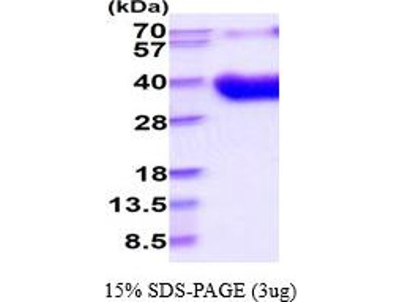 The purity of the protein is greater than 95 % as determined by SDS-PAGE and Coomassie blue staining.