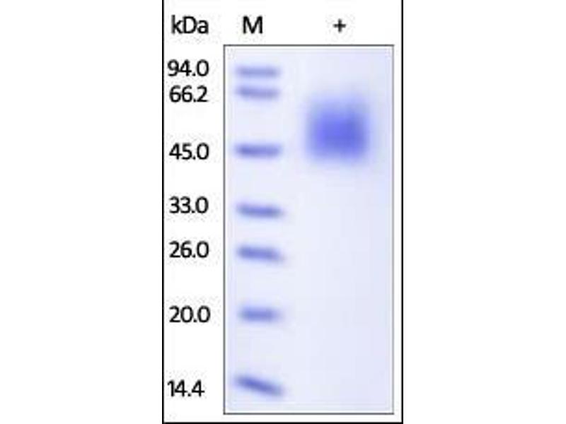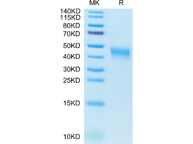 The purity of the protein is greater than 95 % as determined by SDS-PAGE and Coomassie blue staining.