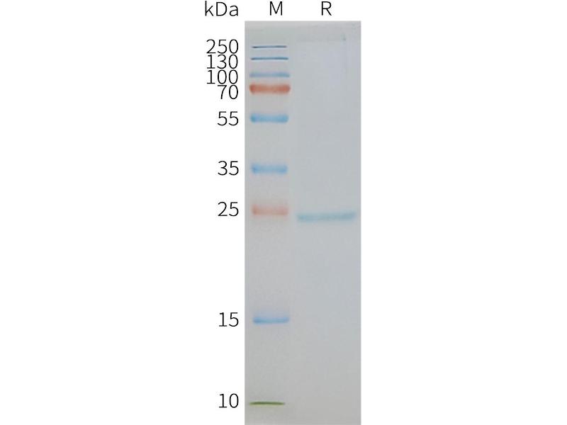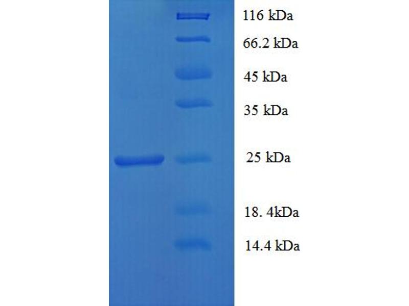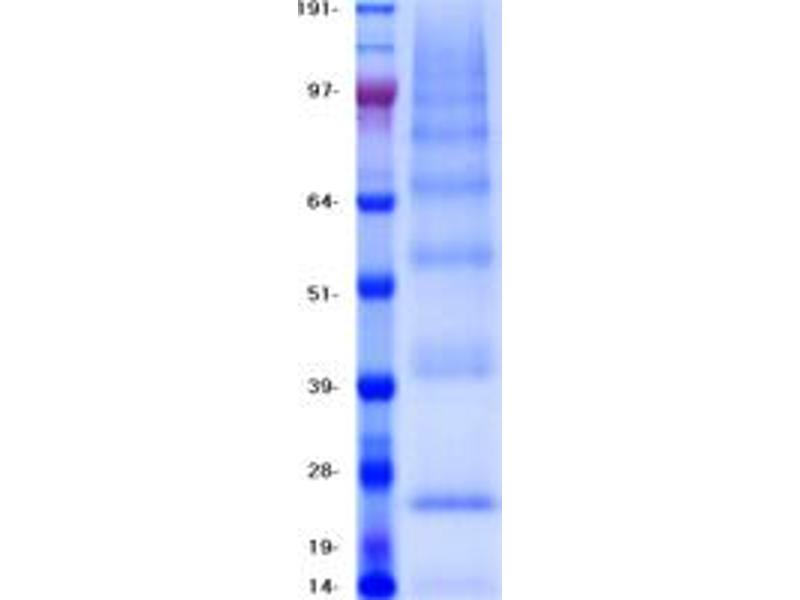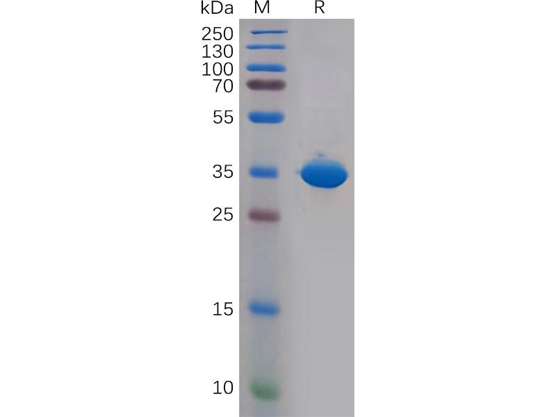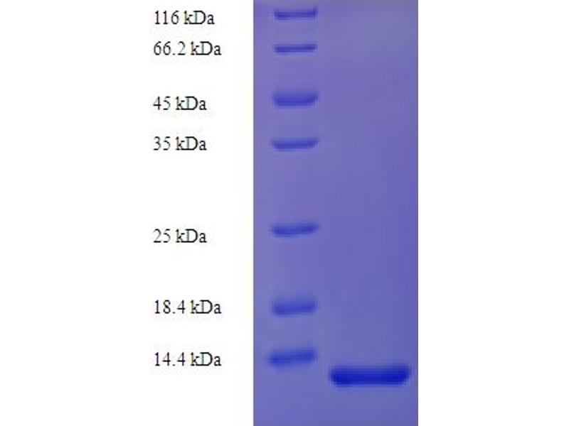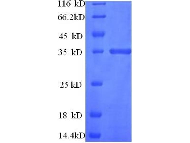 The purity of the protein is greater than 90 % as determined by SDS-PAGE and Coomassie blue staining.