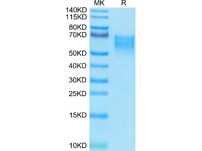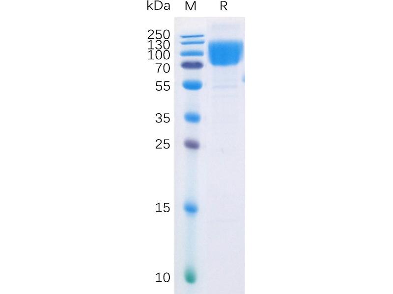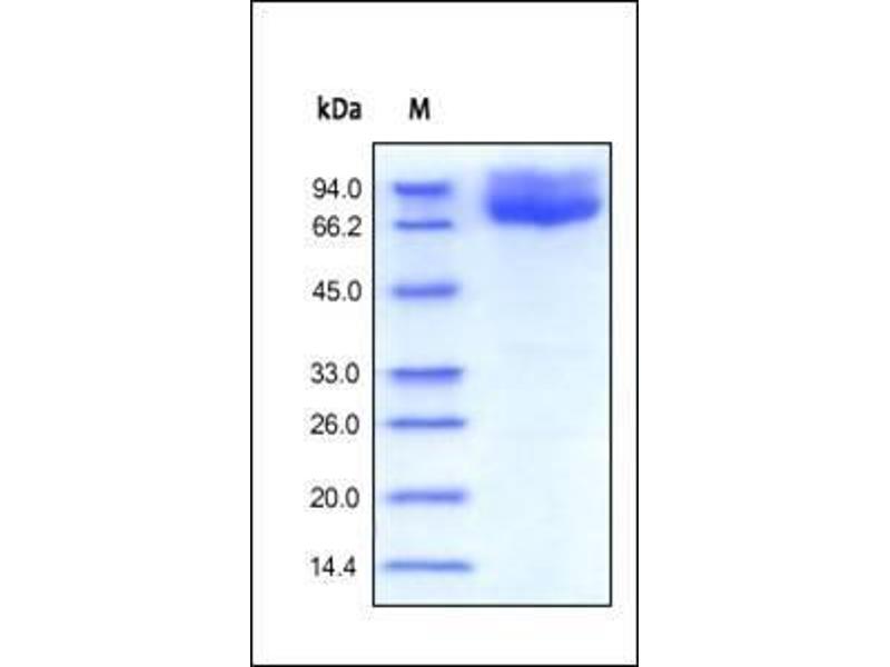 The purity of the protein is greater than 95 % as determined by SDS-PAGE and Coomassie blue staining.