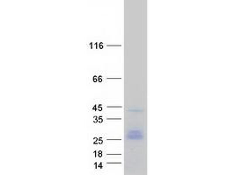 The purity of the protein is greater than 95 % as determined by SDS-PAGE and Coomassie blue staining.
