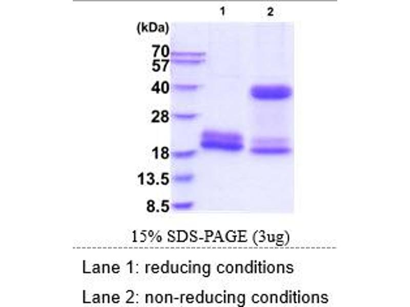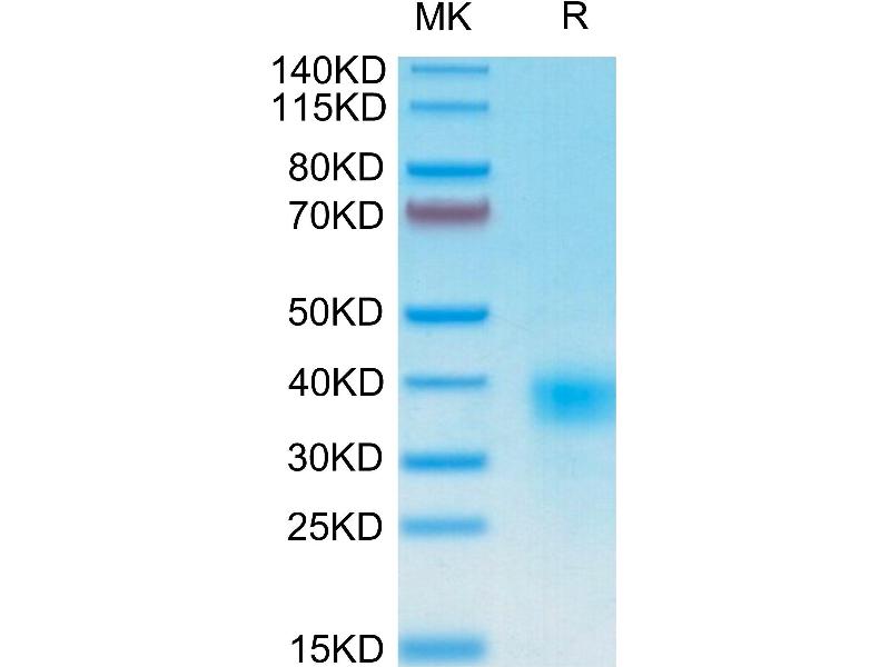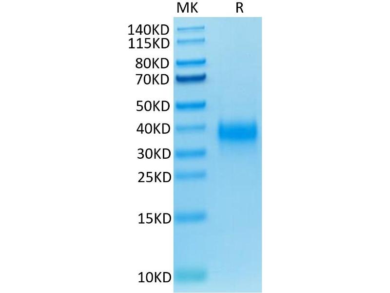 The purity of the protein is greater than 95 % as determined by SDS-PAGE and Coomassie blue staining.