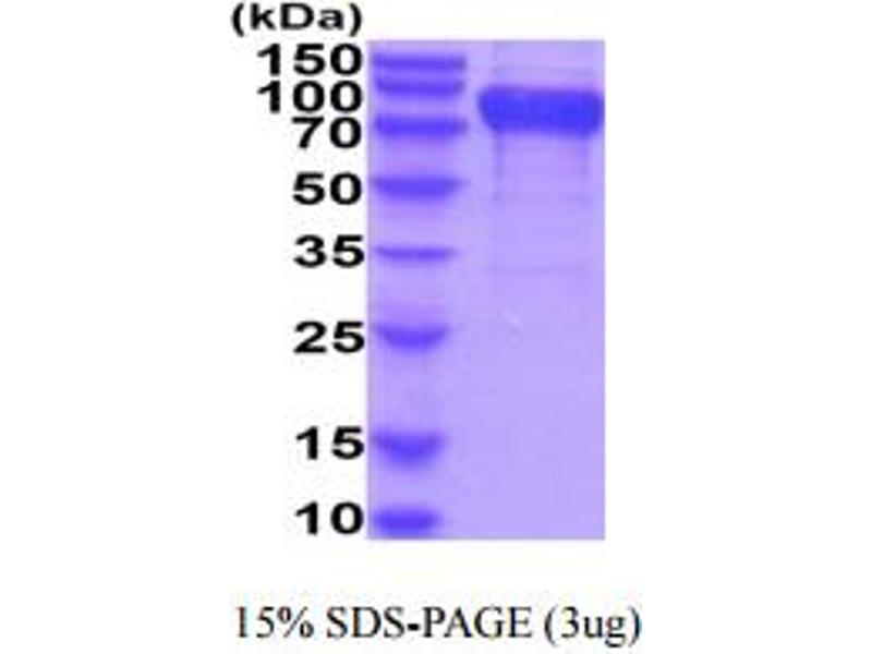 The purity of the protein is greater than 95 % as determined by SDS-PAGE and Coomassie blue staining.
