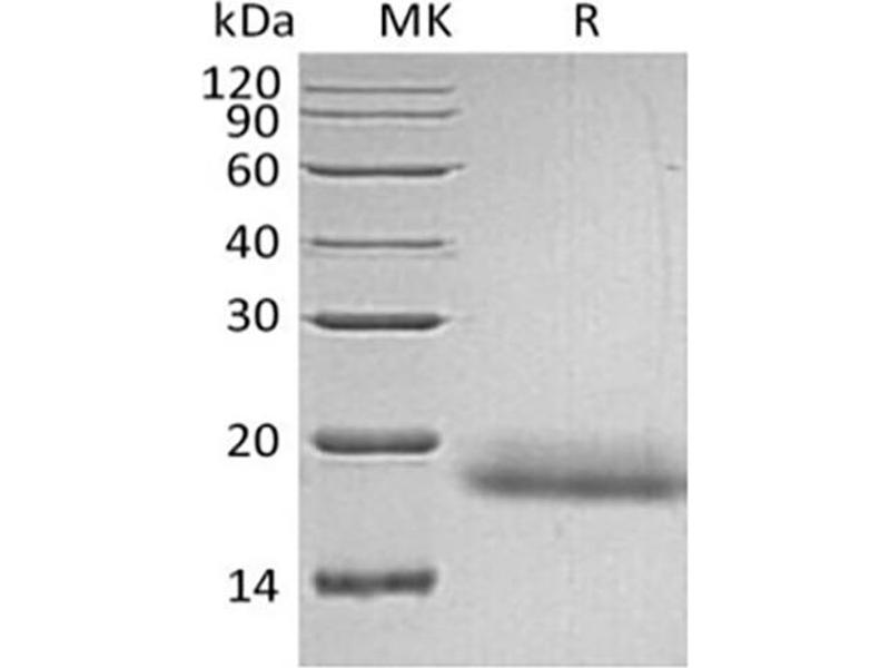 The purity of the protein is greater than 95 % as determined by SDS-PAGE and Coomassie blue staining.