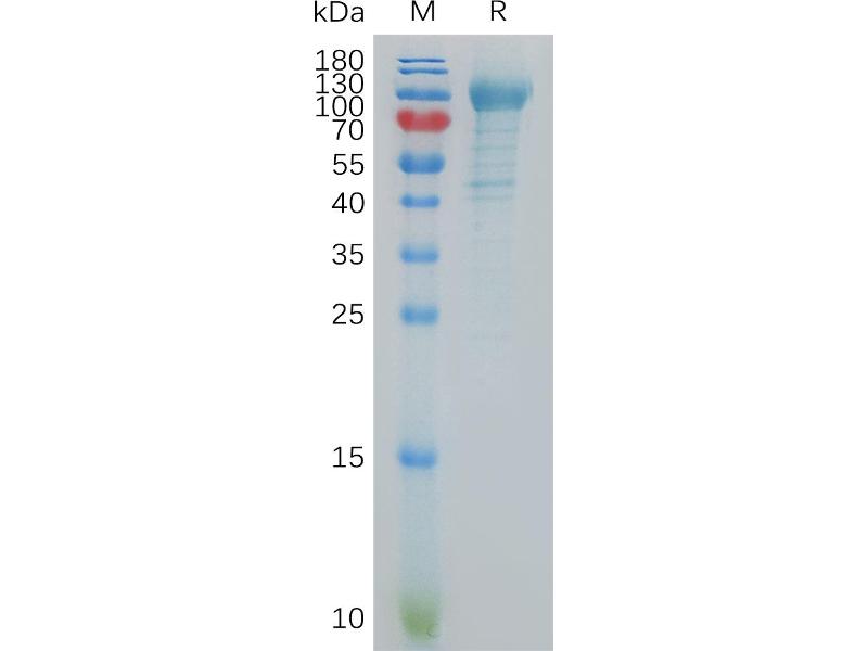 The purity of the protein is greater than 90 % as determined by SDS-PAGE and Coomassie blue staining.