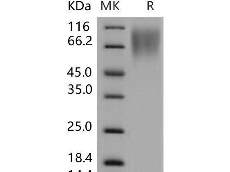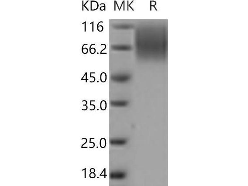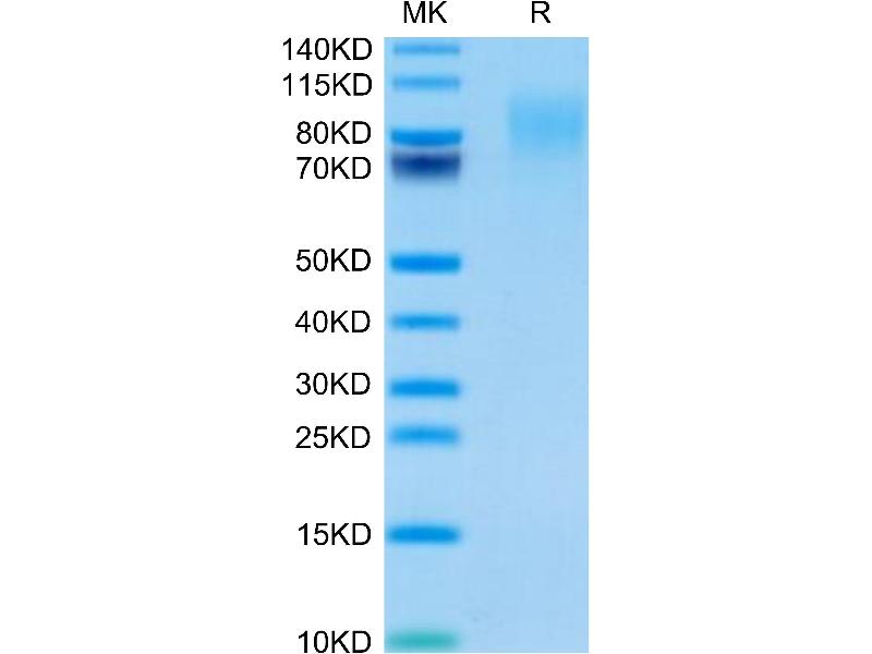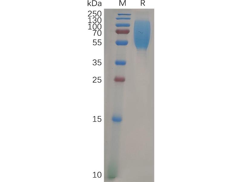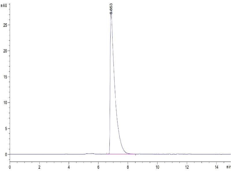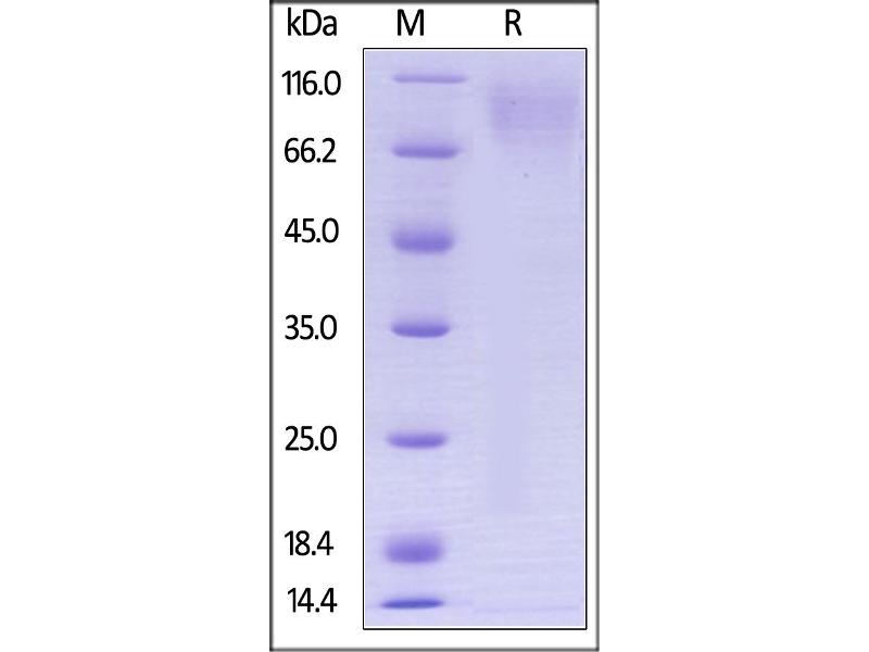 The purity of the protein is greater than 85 % as determined by SDS-PAGE and Coomassie blue staining.