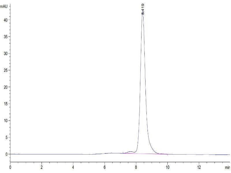 The purity of the protein is greater than 95 % as determined by SDS-PAGE and Coomassie blue staining.
