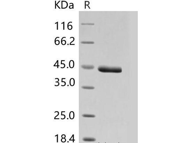 The purity of the protein is greater than 85 % as determined by SDS-PAGE and Coomassie blue staining.