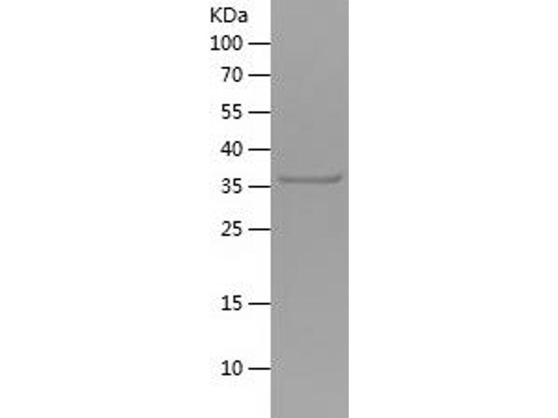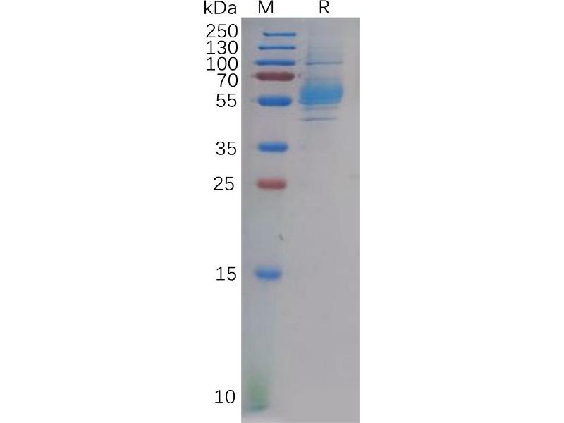 The purity of the protein is greater than 95 % as determined by SDS-PAGE and Coomassie blue staining.