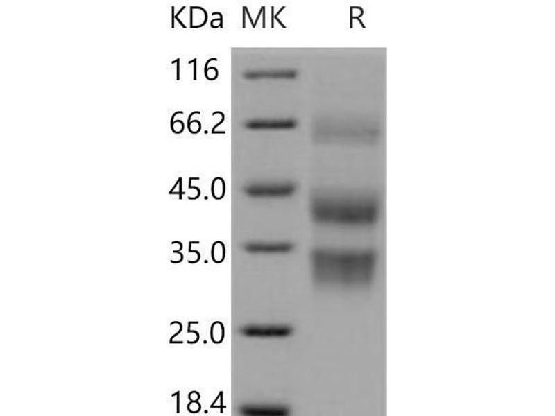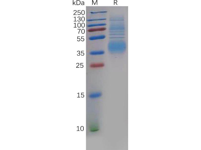 The purity of the protein is greater than 95 % as determined by SDS-PAGE and Coomassie blue staining.