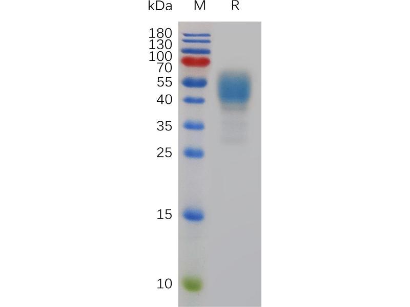 The purity of the protein is greater than 95 % as determined by SDS-PAGE and Coomassie blue staining.