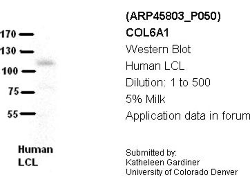 COL6A1 Reaktivität: Human WB Wirt: Kaninchen Polyclonal unconjugated
