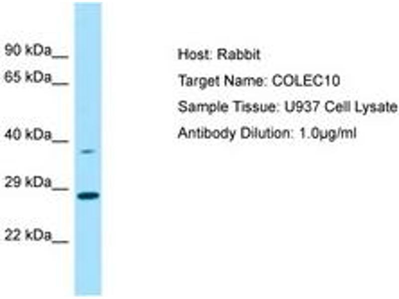 COLEC10 Reaktivität: Human, Ratte, Maus, Rind (Kuh), Meerschweinchen, Pferd, Fledermaus, Affe, Schwein WB Wirt: Kaninchen Polyclonal unconjugated