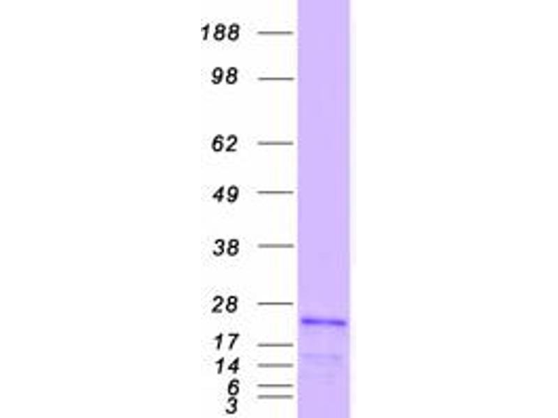 The purity of the protein is greater than 95 % as determined by SDS-PAGE and Coomassie blue staining.