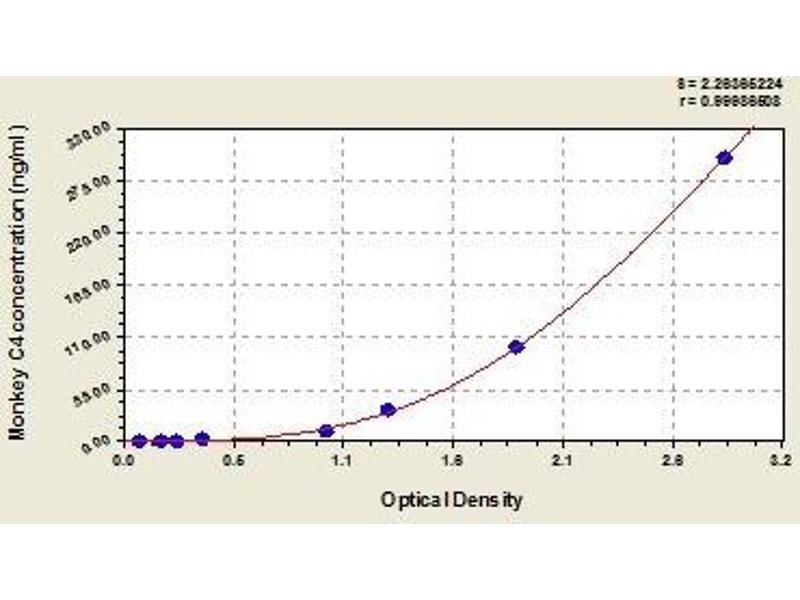 C4 Reaktivität: Affe Colorimetric Sandwich ELISA 0.469 ng/mL - 30 ng/mL Plasma, Serum, Tissue Homogenate