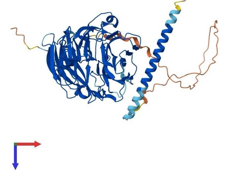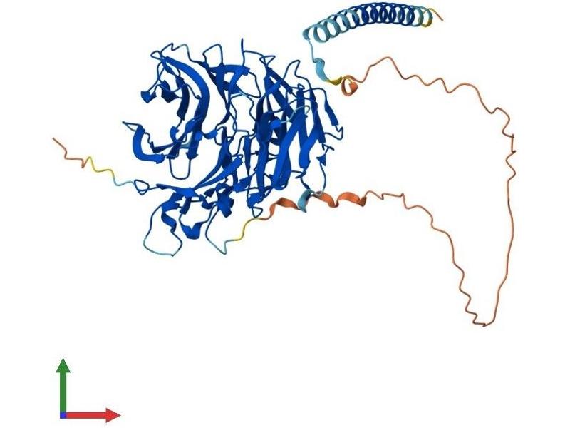 This gene encodes a member of the WD repeat protein family. WD repeats are minimally conserved regions of approximately 40 amino acids typically bracketed by gly-his and trp-asp (GH-WD), which may facilitate formation of heterotrimeric or multiprotein complexes. Members of this family are involved in a variety of cellular processes, including cell cycle progression, signal transduction, apoptosis, and gene regulation. This protein contains 5 WD repeats, and has a structural similarity with actin-binding proteins: the D. discoideum coronin and the human p57 protein, suggesting that this protein may also be an actin-binding protein that regulates cell motility. Alternative splicing of this gene generates 2 transcript variants. [provided by RefSeq, Jul 2008].