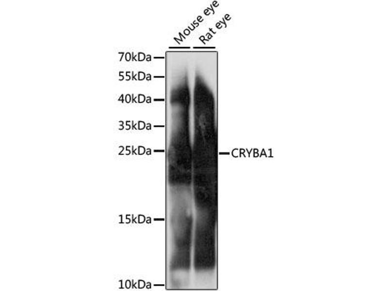 : "The identification and characterization of the p.G91 deletion in CRYBA1 in a Chinese family with congenital cataracts." in: BMC medical genetics, Vol. 20, Issue 1, pp. 153, (2019) (PubMed).Aliase für CRYBA1 Antikörper
