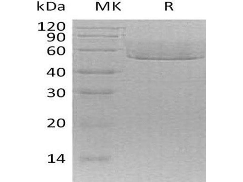 The purity of the protein is greater than 85 % as determined by SDS-PAGE and Coomassie blue staining.