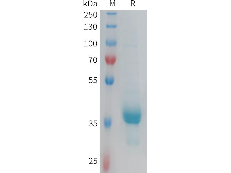 The purity of the protein is greater than 95 % as determined by SDS-PAGE and Coomassie blue staining.