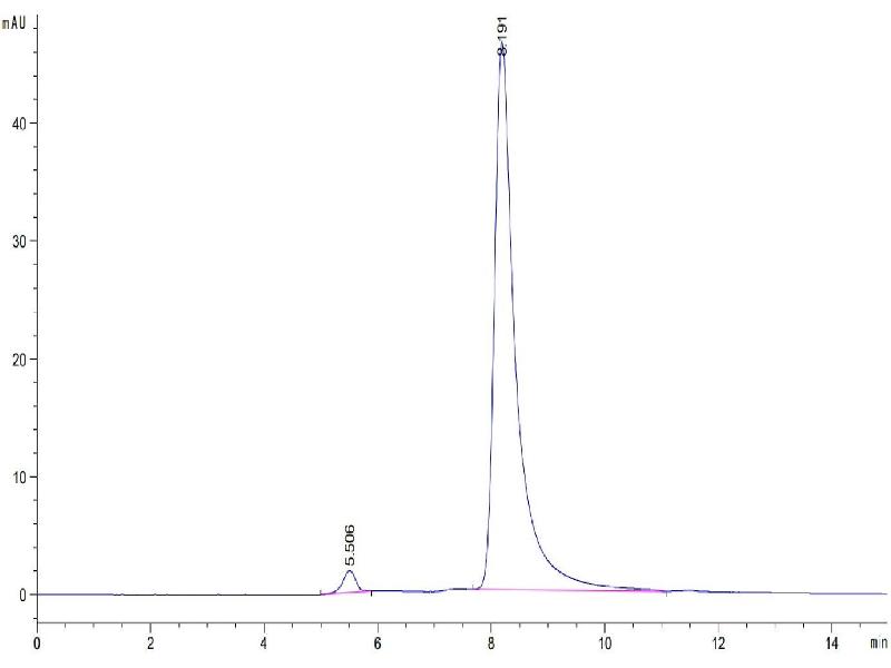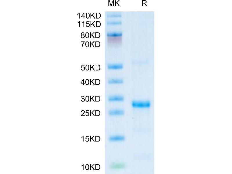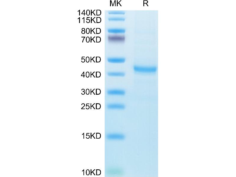 The purity of the protein is greater than 95 % as determined by SDS-PAGE and Coomassie blue staining.