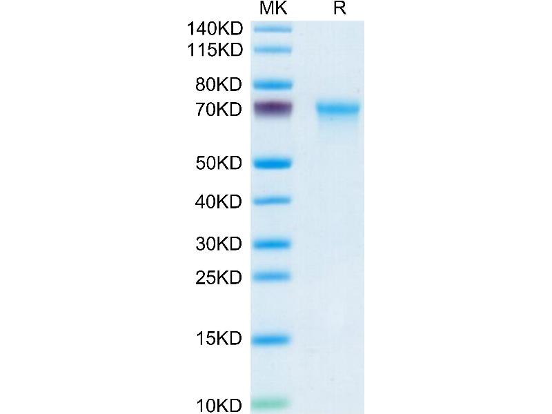The purity of the protein is greater than 95 % as determined by SDS-PAGE and Coomassie blue staining.