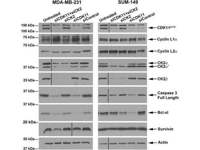 : "Preclinical evaluation of cyclin dependent kinase 11 and casein kinase 2 survival kinases as RNA interference targets for triple negative breast cancer therapy." in: Breast cancer research : BCR, Vol. 17, pp. 19, (2015) (PubMed).
