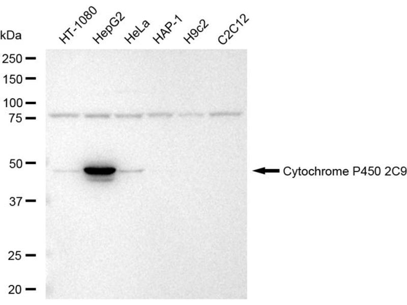 Entdecken Sie zuverlässige CYP2C9-Antikörper von einer großen Zahl namhafter Hersteller. Unser Portfolio ermöglicht eine präzise CYP2C9-Detektion in verschiedenen Spezies, darunter Human, Mouse, Horse, Cow, Dog, Guinea Pig, Pig, Rabbit, Rat, Sheep, und unterstützt vielfältige Forschungsanwendungen wie WB, FACS, IF, ICC, IHC (p).
