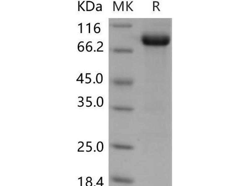 The purity of the protein is greater than 85 % as determined by SDS-PAGE and Coomassie blue staining.