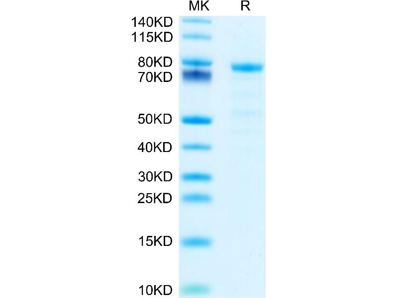 The purity of the protein is greater than 85 % as determined by SDS-PAGE and Coomassie blue staining.