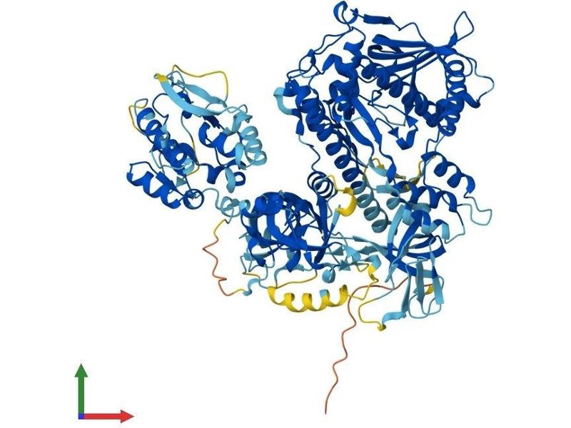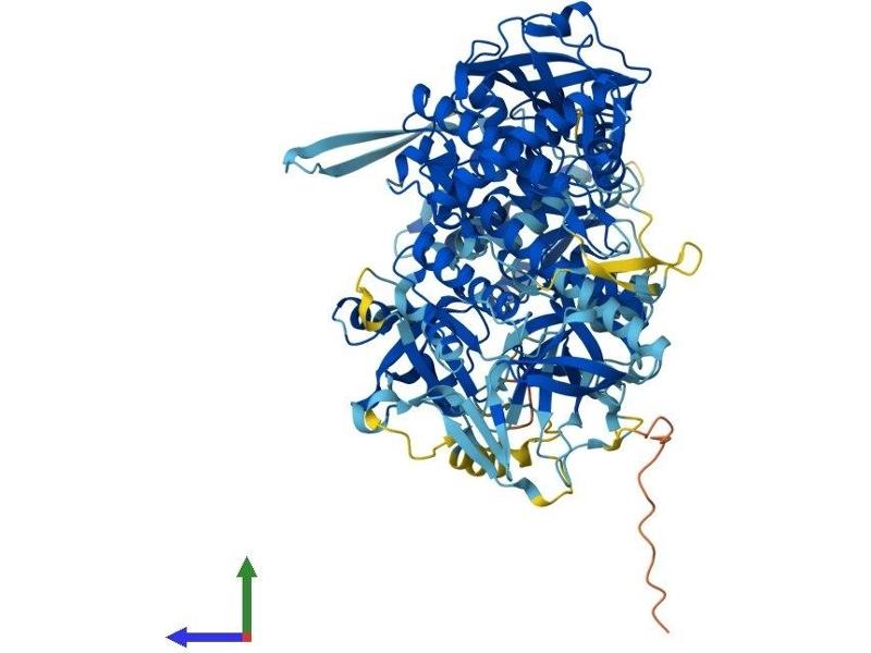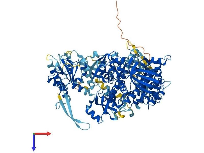 Putative catalytic component of the RNA exosome complex which has 3'->5' exoribonuclease activity and participates in a multitude of cellular RNA processing and degradation events. In the nucleus, the RNA exosome complex is involved in proper maturation of stable RNA species such as rRNA, snRNA and snoRNA, in the elimination of RNA processing by-products and non-coding 'pervasive' transcripts, such as antisense RNA species and promoter-upstream transcripts (PROMPTs), and of mRNAs with processing defects, thereby limiting or excluding their export to the cytoplasm. The RNA exosome may be involved in Ig class switch recombination (CSR) and/or Ig variable region somatic hypermutation (SHM) by targeting AICDA deamination activity to transcribed dsDNA substrates. In the cytoplasm, the RNA exosome complex is involved in general mRNA turnover and specifically degrades inherently unstable mRNAs containing AU-rich elements (AREs) within their 3' untranslated regions, and in RNA surveillance pathways, preventing translation of aberrant mRNAs. It seems to be involved in degradation of histone mRNA. DIS3 has both 3'-5' exonuclease and endonuclease activities (By similarity).