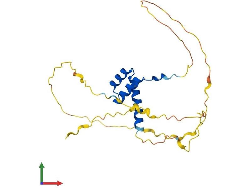 Many vertebrate homeo box-containing genes have been identified on the basis of their sequence similarity with Drosophila developmental genes. Members of the Dlx gene family contain a homeobox that is related to that of Distal-less (Dll), a gene expressed in the head and limbs of the developing fruit fly. The Distal-less (Dlx) family of genes comprises at least 6 different members, DLX1-DLX6. The DLX proteins are postulated to play a role in forebrain and craniofacial development. Three transcript variants have been described for this gene, however, the full length nature of one variant has not been described. Studies of the two splice variants revealed that one encoded isoform functions as a repressor of the beta-globin gene while the other isoform lacks that function. [provided by RefSeq, Jul 2008].